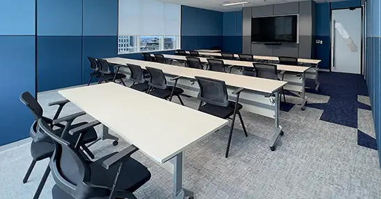 Ruang kelas modern yang dirancang khusus untuk pelatihan, workshop, dan sesi pembelajaran interaktif dengan suasana yang nyaman dan kondusif.
